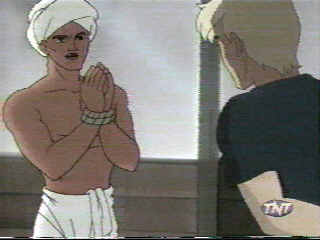 "Oh, are you ok, Hadji? Not hurt or anything, my friend? Oh no, Jonny-- I am absolutely fine. Several iron pipes have played 'Big Noise from Winnetka' upon my head, but fortunately, I wear a turban." |